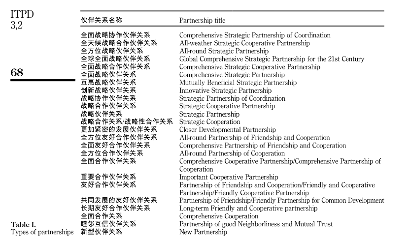 “文后附上李泉和叶珉(2019)所制之表格,该表格列举了中国在国际上使用的外交伙伴关系术语。”